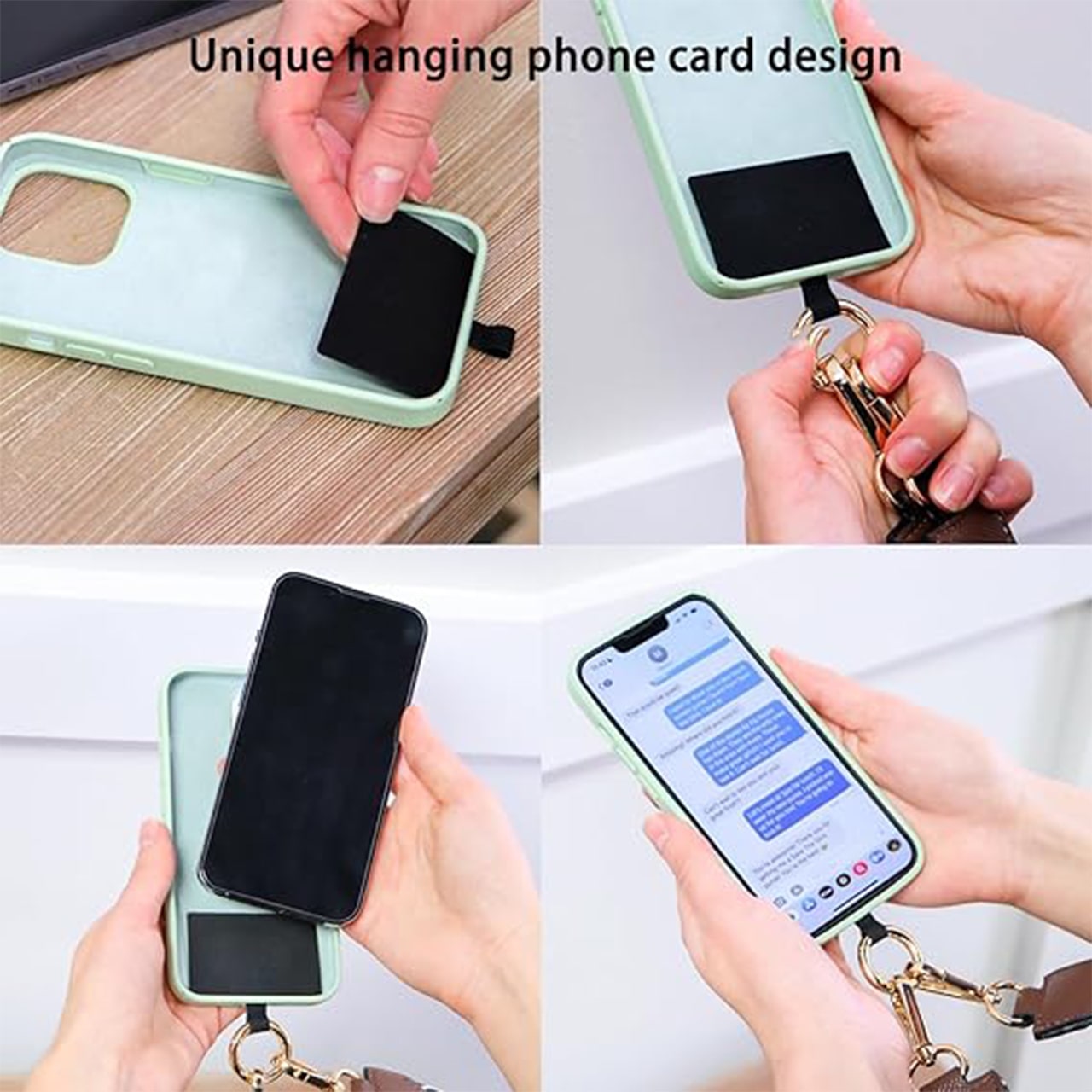 Лесно за инсталиране - поставете подложката между телефона и калъфа за телефон. Поставете каишката на пръстена, прикрепен към подложката.