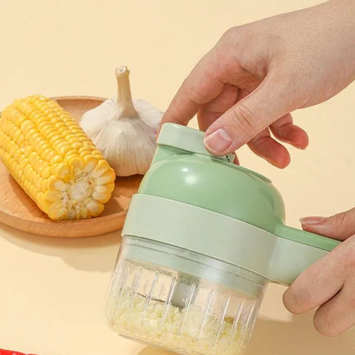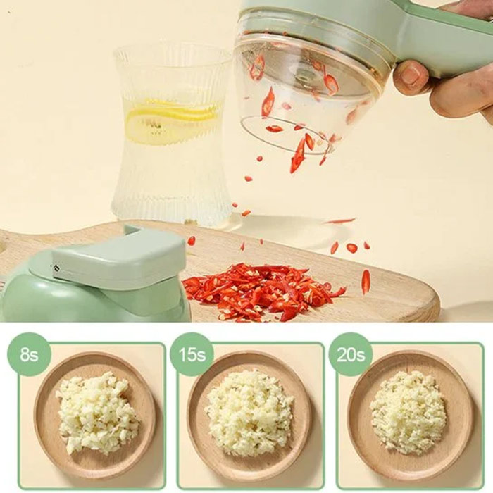 Крайната комплектация за лесно рязане и нарязване, по-проста и по-достъпна от сложни кухненски уреди, и по-мощна и бърза от обикновените кухненски ножове. Комплектът включва 2 различни контейнера (един затворен и един с отвор), 2 остри остриета, безжична електрическа дръжка, белачка за плодове и издръжлива електрическа четка за почистване!