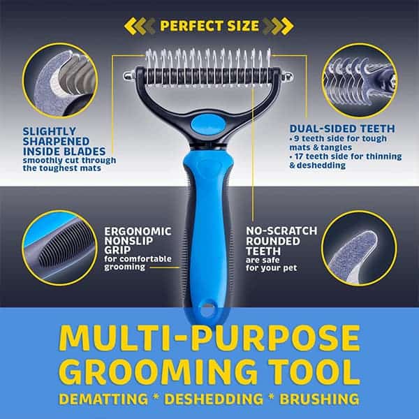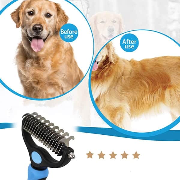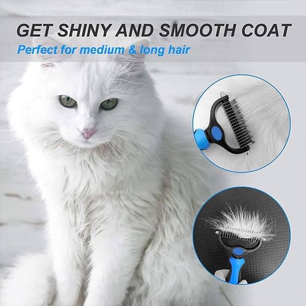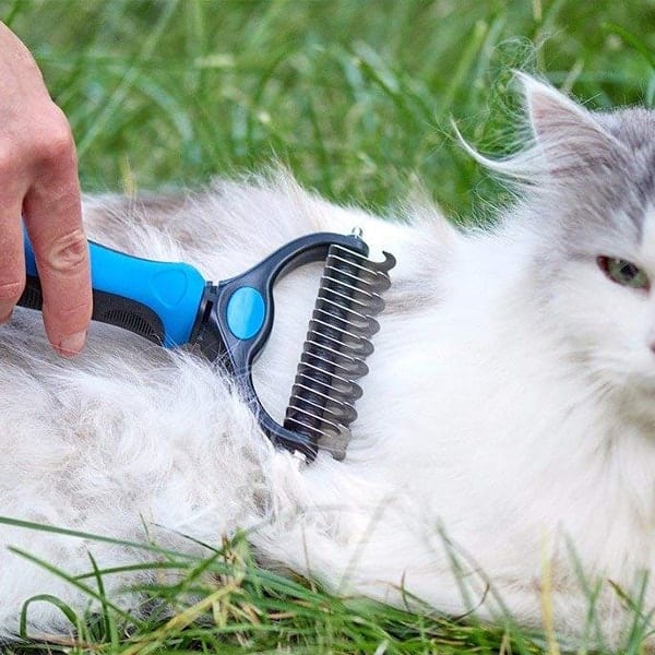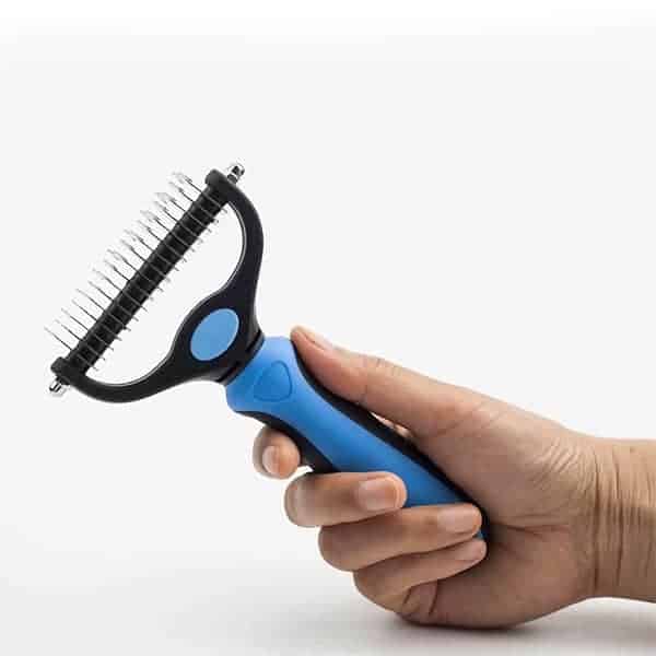 Двустранната четка за разресване на козина е подходяща за кучета, котки, зайци, коне и много други космати приятели.