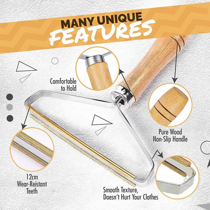 - Уредът за премахване на власинки е с дървена дръжка, която осигурява дълъг експлоатационен живот