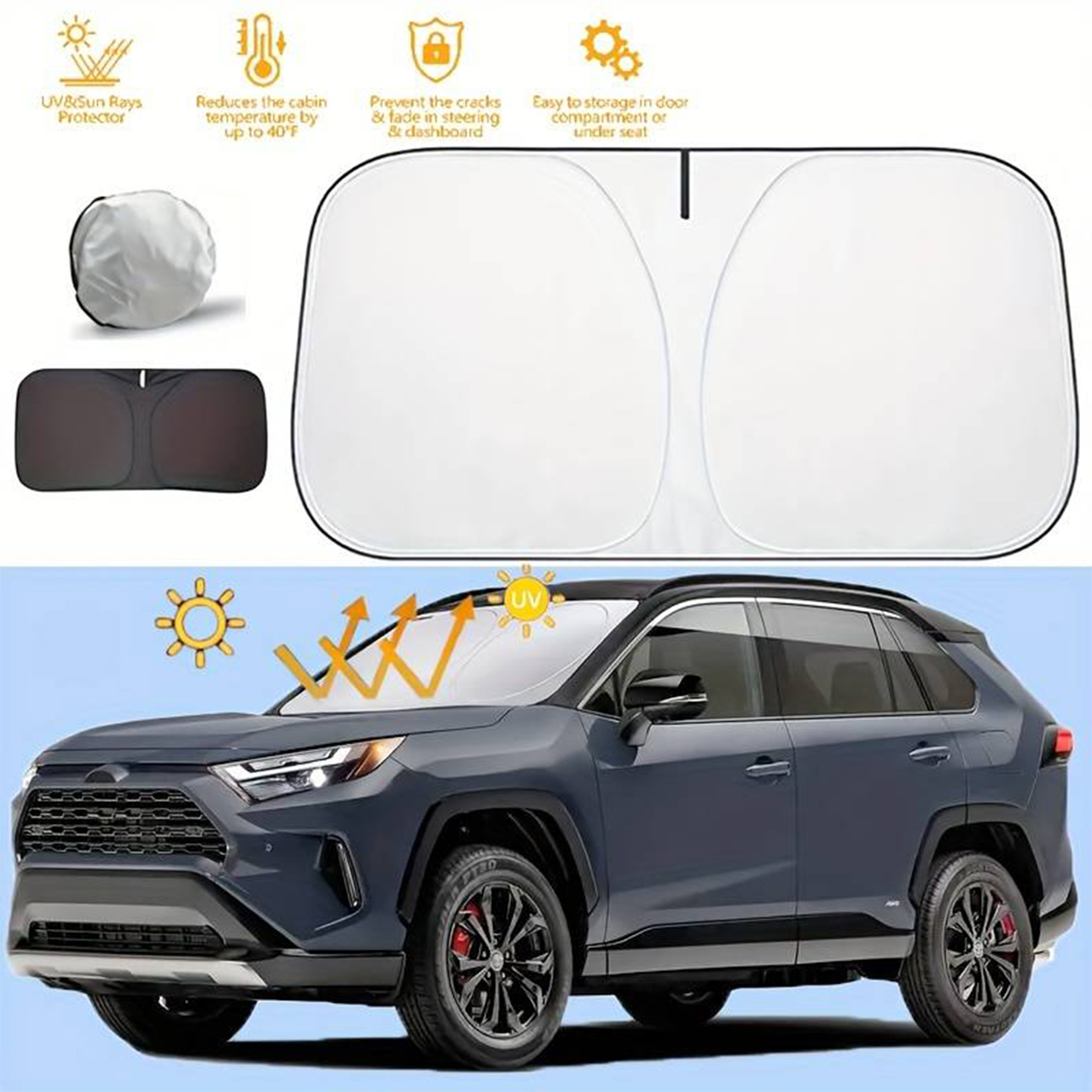 Сгъваемият сенник за предното стъкло на колата е идеалният аксесоар за защита на вашата кола от високи температури и прекалено горещ волан и табло!